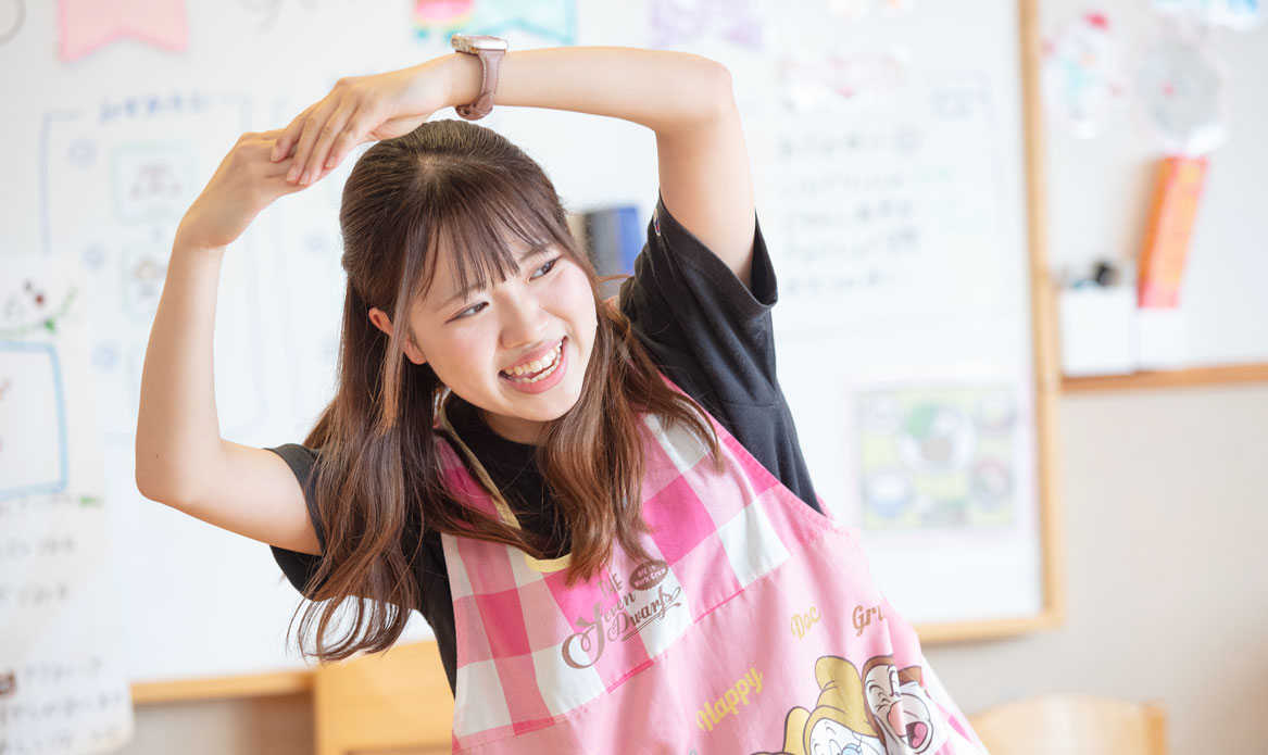 私も最初は不安でいっぱいでした。少し人見知りなところがあるため、職場で他の先生たちと上手くコミュニケーションが取れるのかも心配でした。でも未熟な私を、園長先生を始め、先輩の先生方が優しく、時には厳しく、一つひとつ丁寧に教えてくださり、親身になってアドバイスしてくださいました。今こうして楽しく働けているのも職場の先生方のサポートのおかげ。優しさに触れることで、改めて思いやりの大切さを学び、何事にも感謝の気持ちが自然に持てるようになった気がします。仕事を通してたくさんの人との出会いがあり、話すことが好きになったことも大きな成長です。これからも新しいことにどんどん挑戦していくつもりです!